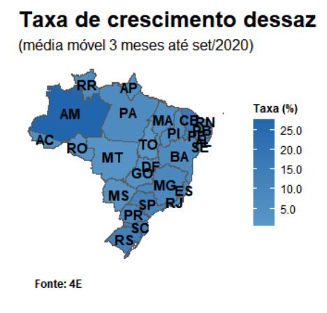 O resultado do PIB regional na média móvel trimestral dessazonalizada terminada em set/2020, trouxe resultados positivos para 27 unidades federativas, assim evidenciando o processo gradual de recomposição econômica.
