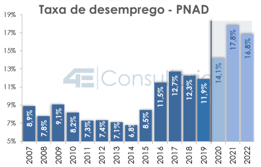 Segundo a PNAD contínua , do IBGE, a taxa de desocupação (14,6%) no trimestre móvel encerrado em setembro de 2020 foi a mais alta da série histórica iniciada em 2012, crescendo 1,3 p.p . na comparação com o trimestre encerrado em junho.